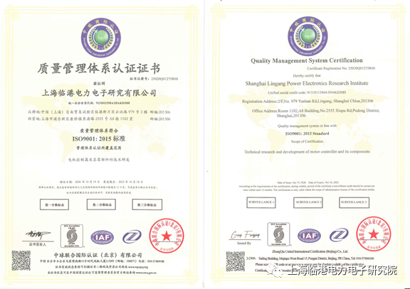 ISO9001標準是體現公司質量管理體系的國際化標準。本次上海臨港電力電子研究有限公司ISO9001質量管理體系認證所覆蓋范圍為電機控制器及其零部件的技術研發。通過認證,表明上海臨港電力電子研究院在各項管理系統整合上已達到了國際標準,能夠提供令客戶滿意、合格且優質的產品與服務。